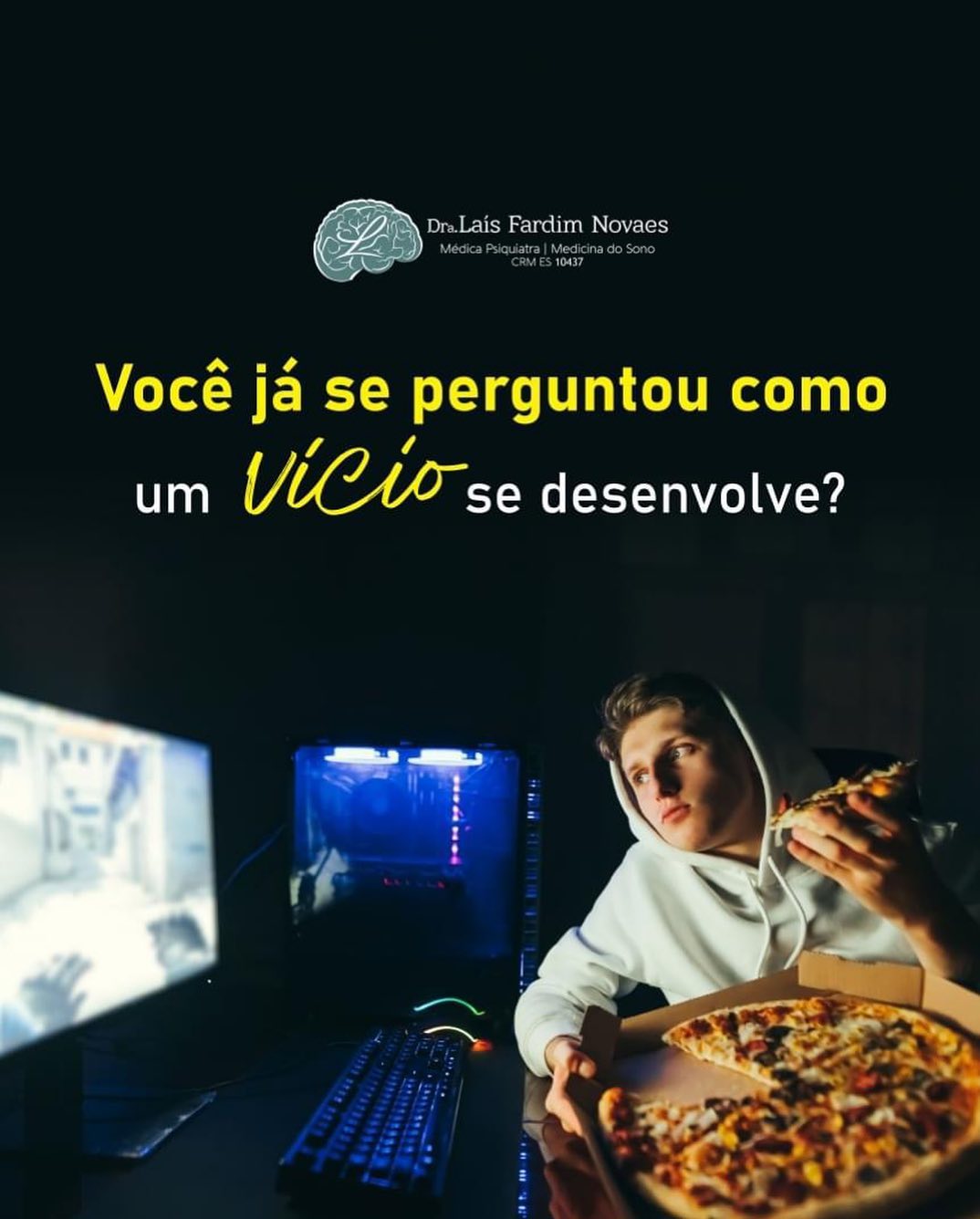 Primeiro que quando se fala em vício a mente se volta para substâncias psicoativas, mas na verdade muitas coisas podem se tornar um vício: compras, jogos eletrônicos, sexo, conteúdo pornográfico, redes sociais, comida e entre outras infinitas possibilidades.
